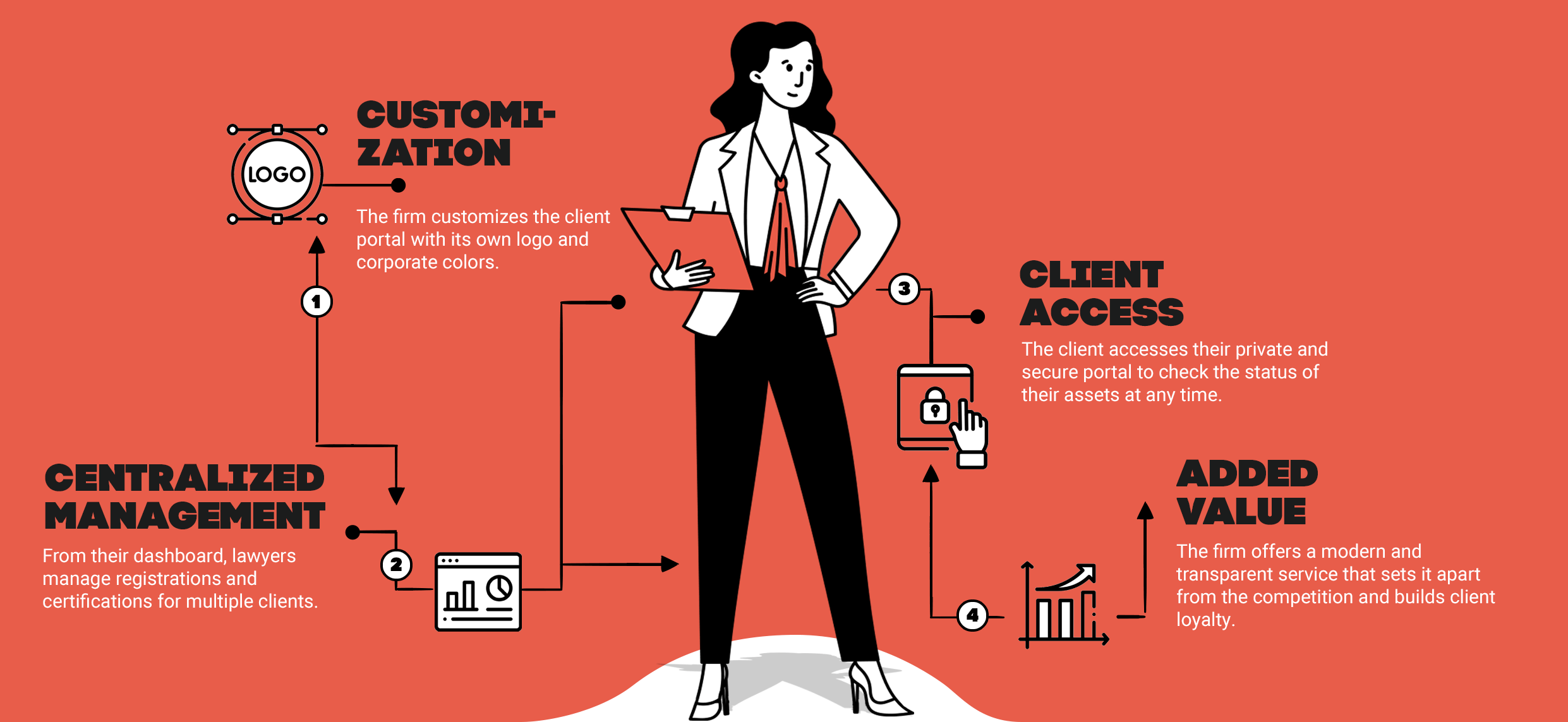Manage trademarks, register, and certify everything from the same environment. Designed for lawyers, universities, consultancies, and other organizations.